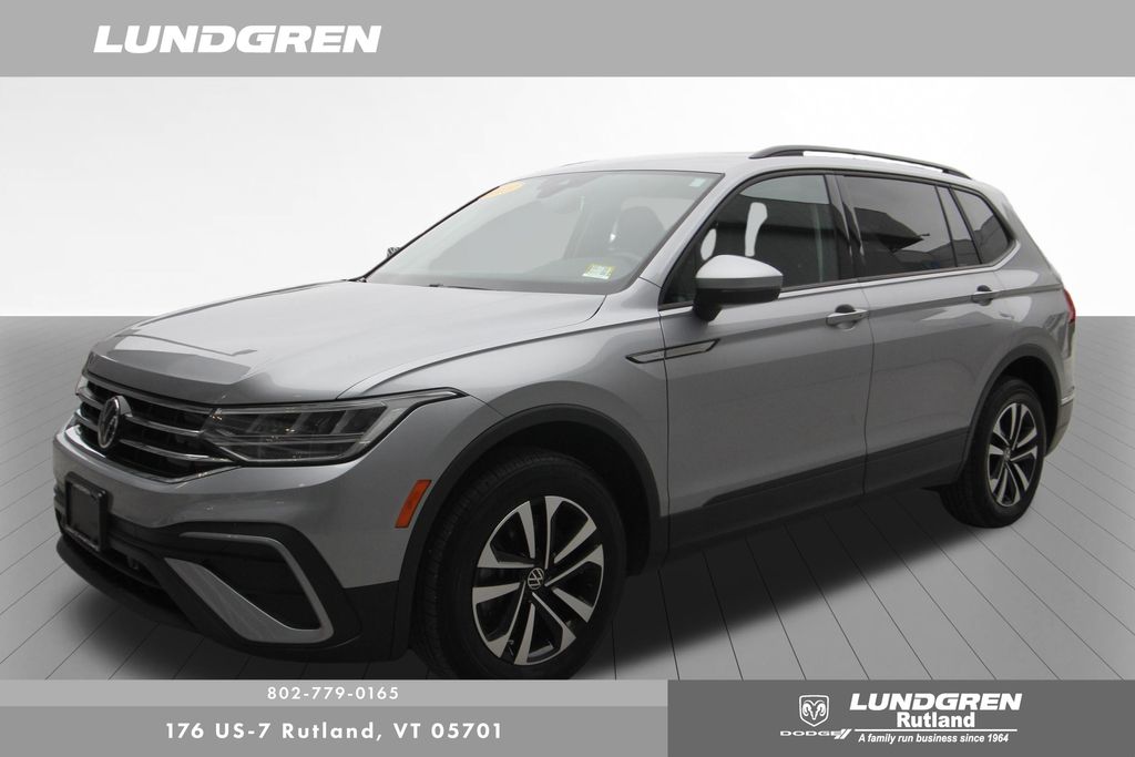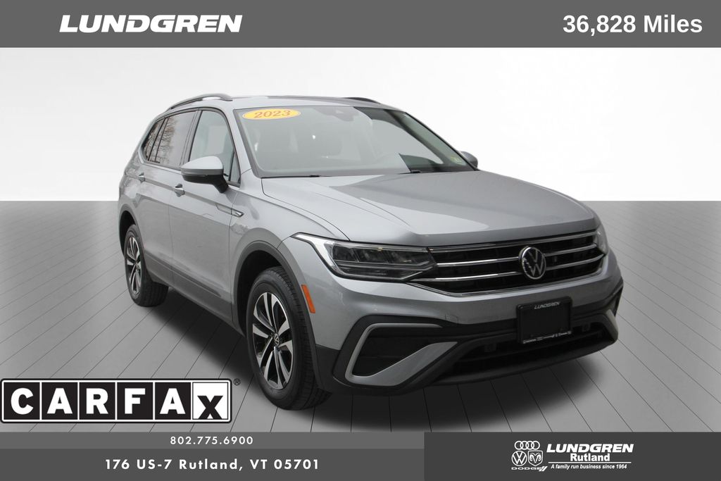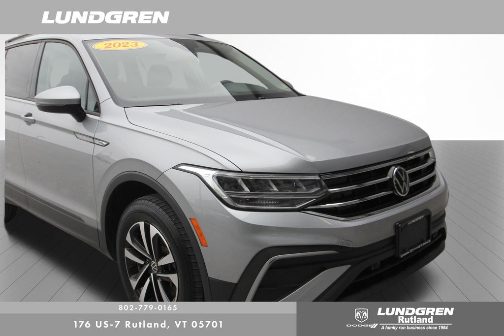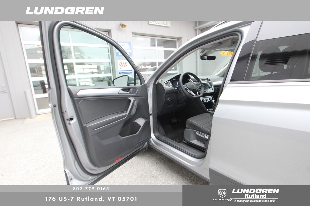 Full financing options available for all levels of credit. We want your trade in! We are Carfax vehicle history certified, buy with confidence. Tiguan 2.0T S, AWD, 1 Owner, Adaptive Cruise Control (ACC) Stop & Go, Auto-Dimming Interior Rear-View Mirror, Convenience Features, Driver Assistance Package, Emergency Assist, Exterior Parking Camera Rear, Forward collision: FCW w/Autonomous Emergency Braking mitigation, Heated door mirrors, Heated Front Bucket Seats, Lane Assist (Lane Keeping System), Leatherette-Wrapped Steering Wheel, Power door mirrors, Rain-Sensing Automatic Front Wipers, Remote keyless entry, Telescoping steering wheel, Tilt steering wheel, Travel Assist (Semi-Automated Driving Assistance), Wheels: 17" 2-Tone Machined Twin 5-Spoke Alloy. Clean CARFAX. CARFAX One-Owner. 2023 Tiguan Silver Metallic Volkswagen 2.0T S AWD